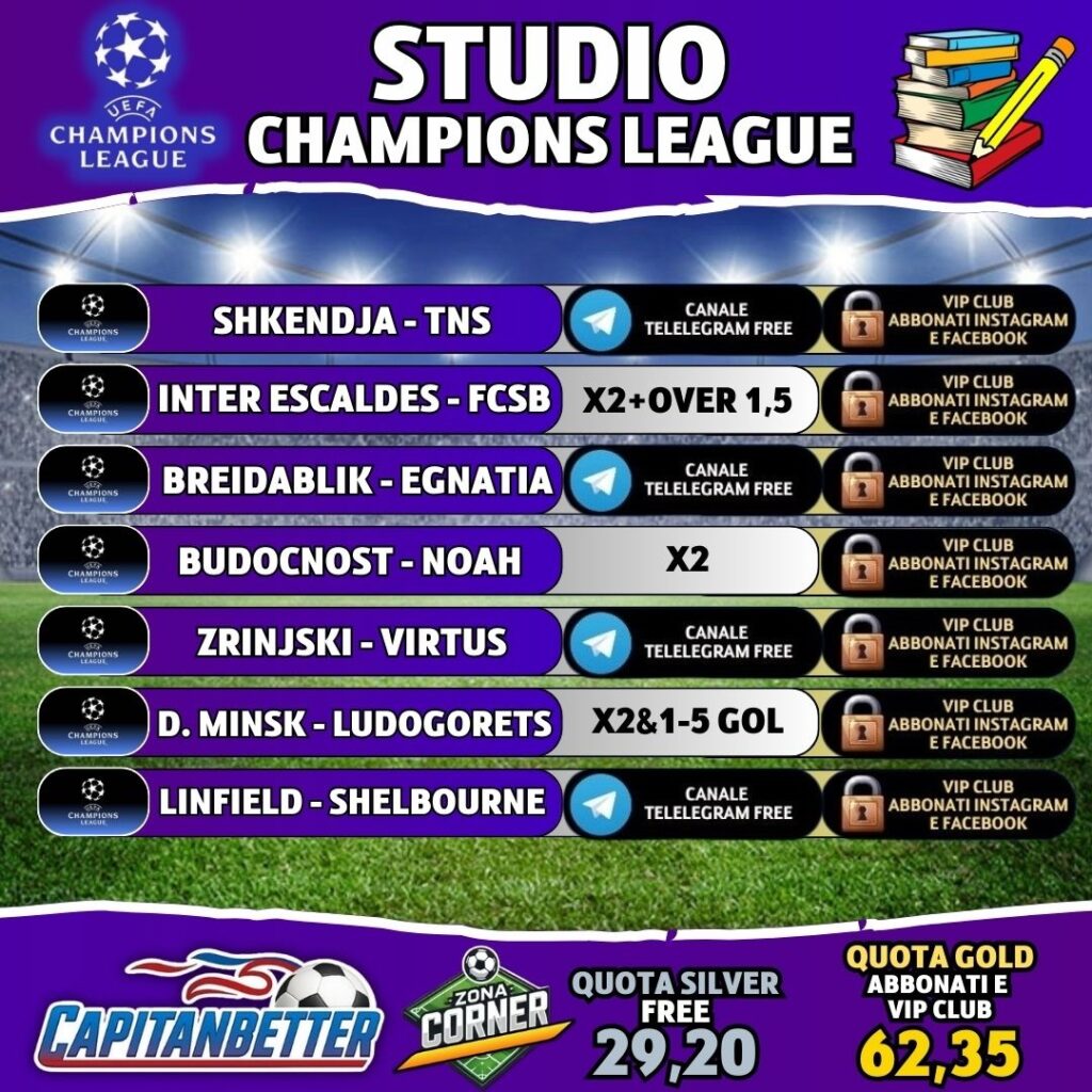- QUOTA GOLD consultabile per utenti del VIP CLUB o ABBONATI al CANALE INSTAGRAM O ABBONATI FACEBOOK