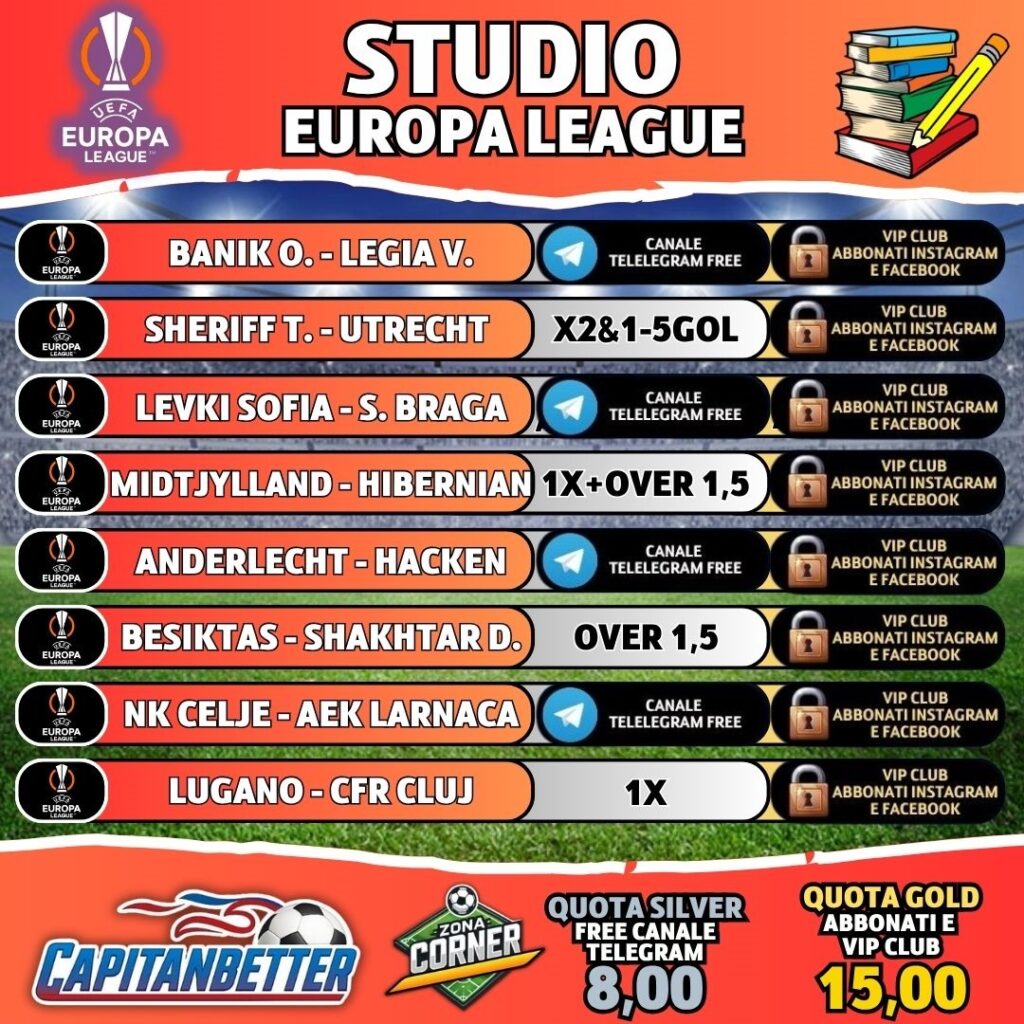 - QUOTA GOLD consultabile per utenti del VIP CLUB o ABBONATI al CANALE INSTAGRAM O ABBONATI FACEBOOK
