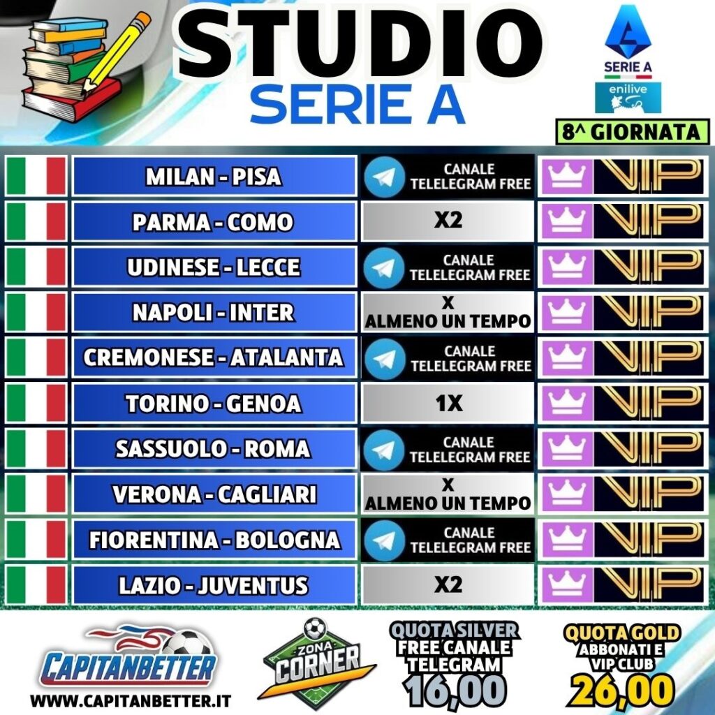 - QUOTA GOLD consultabile per utenti del VIP CLUB o ABBONATI al CANALE INSTAGRAM O ABBONATI FACEBOOK
