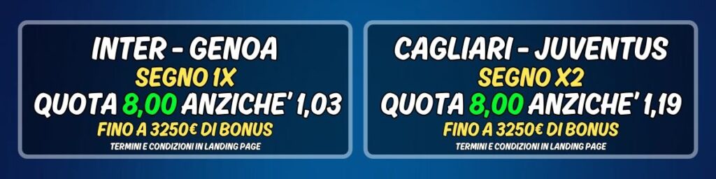 Il bonus benvenuto di Lottomatica è riservato ai nuovi iscritti. Lottomatica offre un Bonus Sport del 100% sul primo deposito fino a 2550€. Si applicano T&C.
